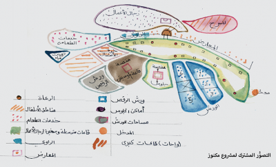 خلصت الورشة في يومها الثاني إلى طرح المشروع الثقافي الذي يمكن تطويره. فقد توزّع المشاركون على ثلاث فرق لصناعة المحتوى والرؤية والاستراتيجية والتصميم المعماري الخاص بالمشروع. فكان تفاعلهم واضحاً من خلال الرسومات البيانية التي قدَّموها للمستثمرين المفترضين الذين سيقومون بتمويل المشروع، وشرح أسباب اختيار المكان، وهو حديقة مركز إثراء، وشرح النشاطات التراثية المتنوِّعة التي ستشكِّل الحدث للعام المقبل.
