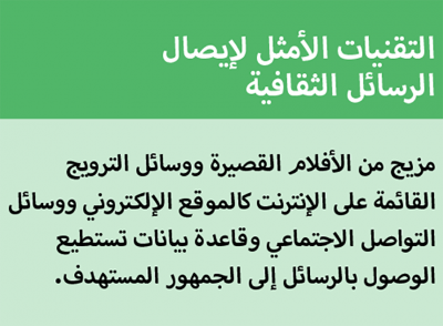 وفي المفاهيم ركّزت المدرِّبة على ضرورة الحيادية وفهم الآخر لتطوير المشروعات الثقافية، وهنا تجدر الإشارة إلى أن أولويات التواصل تختلف حسب المادة التي نريد إيصالها ولمن. فإذا كان موضوع التراث الثقافي الذي نريد إيصاله هو عن التاريخ وإذا كان الجمهور المستهدف هم الأطفال، فهل تكون وسيلة إيصال الرسالة هو كتاب من ألف صفحة أم الأجدر أن ننتج فلماً كرتونياً من 30 دقيقة؟
