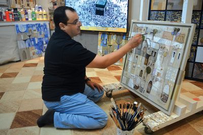 • له جدارية كبيرة في مطار الملك عبدالعزيز الدولي بجدة وجدارية بمدينة الملك عبدالله الرياضية بجدة (ملعب الجوهرة)