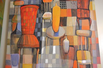 ورسم فهد خليف الكرسي باعتباره رمزاً للمكان والمكانة، وثّمَّة لوحات تضج بالكراسي؛ كراسي في المقاهي، كراسي ملتفة حول طاولات الشاي، كراسي تنتظر من يجلس عليها، وكراسي ودعت من جلس عليها. هي الأماكن التي يختارها الإنسان ليجلس فيها، وهي المكانة التي تمنحه إياها الحياة ومقدرات الزمن، كما يصفها مبدعها. إنها لغة عالية الرمزية وأصيلة، يتأملها المشاهد ولا يملها.