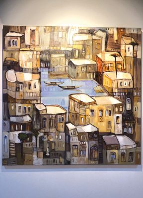 وتركَّزت تلك الرؤية البصرية في المكون العمراني والبيئي لمدينتي الباحة وجدة، فأنتجت مخيلة استوحت عناصرها من هاتين البيئتين، ليظهر في لوحاته امتزاج مفردات العمران في كليهما، مثل واجهات البيوت وأسطحها، وزرقة البحر، والقوارب والنخيل والأشجار والأسماك. وهذا ما عبَّر عنه في مجموعة أعماله بمعرضه الشخصي الثامن عشر، الذي أقامه في ديسمبر 2018م بأتيليه جدة، بعنوان: “حوار”، وهو كما يقول: “حوار بين بيئتين معماريتين لمنطقة الباحة ومدينة جدة، مروراً بمكة المكرمة، وفق منظورين متجاورين أحدهما أفقي يعكس واجهات البيوت: الأبواب والنوافذ والأشجار والنخيل، والقوارب والسنابيك، والآخر من زاوية علوية مائلة، حيث تبدو أسطح البيوت و”المناور” التي يدخل منها ضوء الشمس والهواء إلى جوف البيت”.