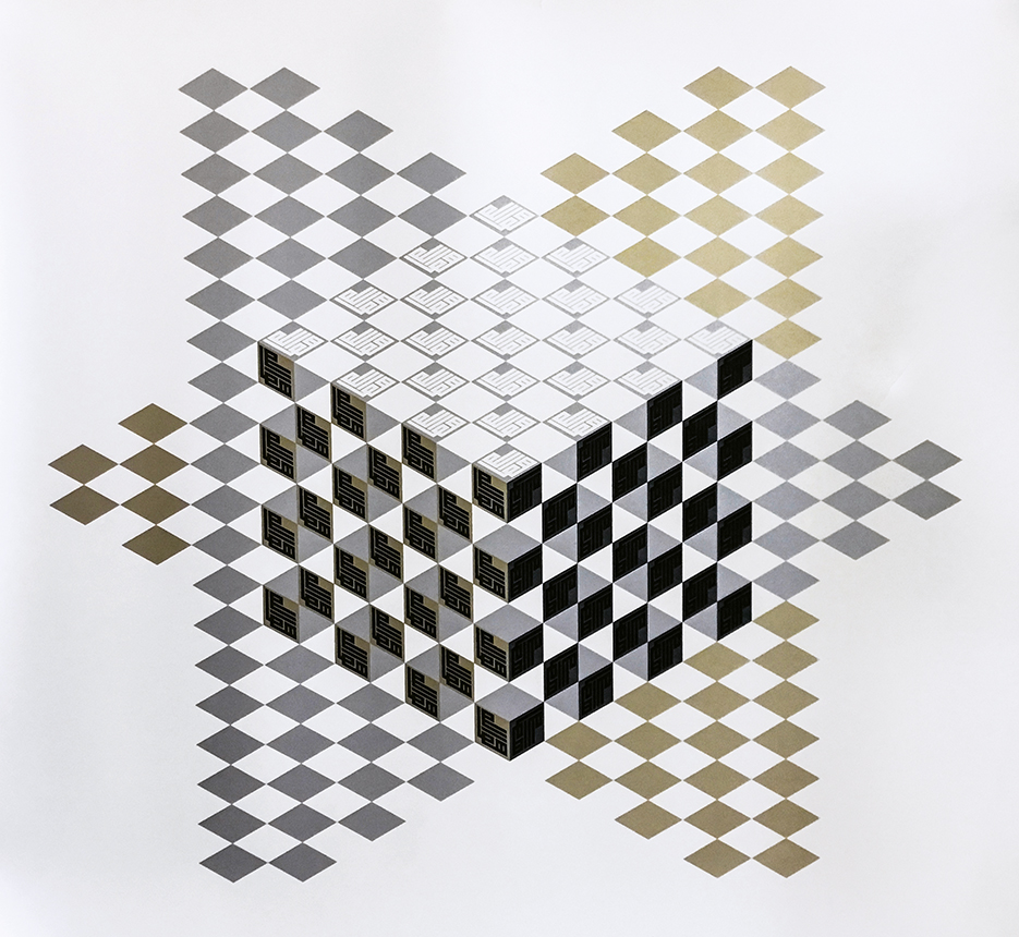في عملها “الأسماء الحسنى” مثلاً، تستعير الفنانة بعض الحروف أو الكلمات. ورغم استلهامها الفنون الإسلامية، إلا أنها تعنى بالتكوين الهندسي المجرّد، كالمربع والمعين ومتعدّد الأضلاع وغيرها. وتصنع من هذه الوحدات أعمالها الفنية. وتضيف أحياناً، وفق التراكيب والأشغال، كتابات ذات معانٍ وفق نظام يضع العمل في سياق الوحدة التي يتجزأ منها المعنى أو الحالة البصرية الجمالية.