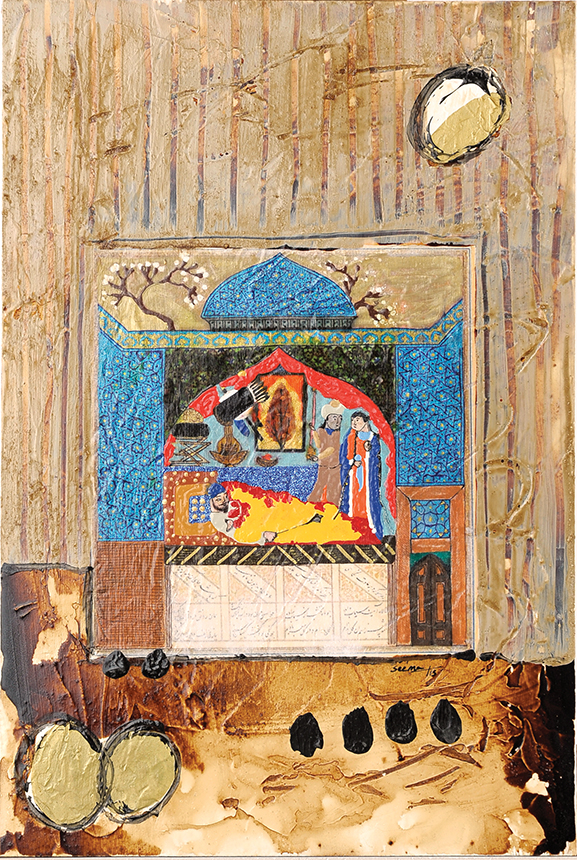 من هنا نشأت فكرة المعرض الذي أطلقته في “غاليري تراث الصحراء” بمدينة الخبر في أبريل 2019م تحت عنوان “صديق ينتظر”، حيث نفذت أعمالاً تستقي مادتها الأساسية ورسوماتها التعبيرية من الكتب التراثية القديمة، لا سيما كتاب “الشاهنامة”. وتختصر في ثناياها اثنتي عشرة قصة فيها كثير من المعارف والعبر. إذ تحكي، على سبيل المثال، عن ذلك الرجل العظيم الذي كان له حلم بسيط في بناء سد من الحجارة والحديد والآجُرّ. أو تروي أساطير لا أحد يستطيع أن يجزم بحقيقتها اليوم. إنه الخيال والتخيل في الأدب القديم، وهو بالتالي تاريخ البسطاء وقصص المهمشين في ثنايا التاريخ. كيف تخيلتهم وكيف حكت حياتهم بهذه الرسوم التعبيرية المليئة بالأحداث والصور والدلالات التي يمكن استنتاج منها تفاصيل ومفارقات في الحياة الاجتماعية القديمة، ومن ثم إسقاطها على الواقع الراهن.