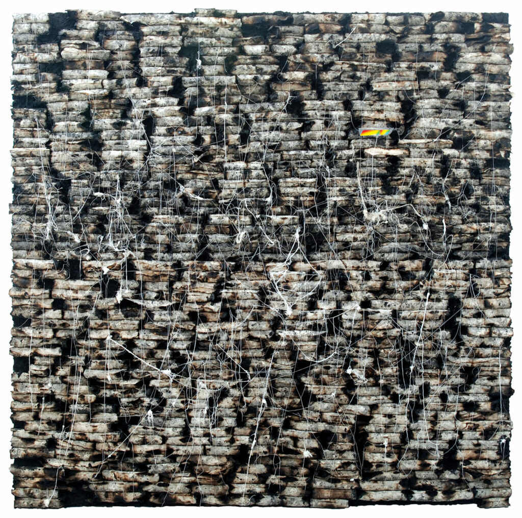 في تقنيتها هذه، تعمد الفنانة إلى تخريب المادة الخام بتمزيقها أو ثَقبها، وكذلك حرقها وتشويهها تماماً كما تفعل الحرب. وهذا التحوُّل المقصود في المادّة هو صورة عن التحوُّلات الناجمة عن الحروب. لكنها رغم دراميتها وتشاؤمها تعكس من زاوية فلسفيّة معيّنة جمالية مرتبطة بفلسفة إعادة الخلق والتفاؤل ما بعد الخراب. كما إن تأثير الانزياح الزمني على الأشياء هو ظاهرة حياتية تحوّل الأشياء إلى أخرى، وهذا ما تترجمه هناء مال لله عبر فنّها. إذ إنها ترى أن انزياح الزمن وانسيابه على الحجر مثلاً، يجعل منه حجراً أثرياً، له جماليته الحاضرة ومعناه التاريخي والفني.