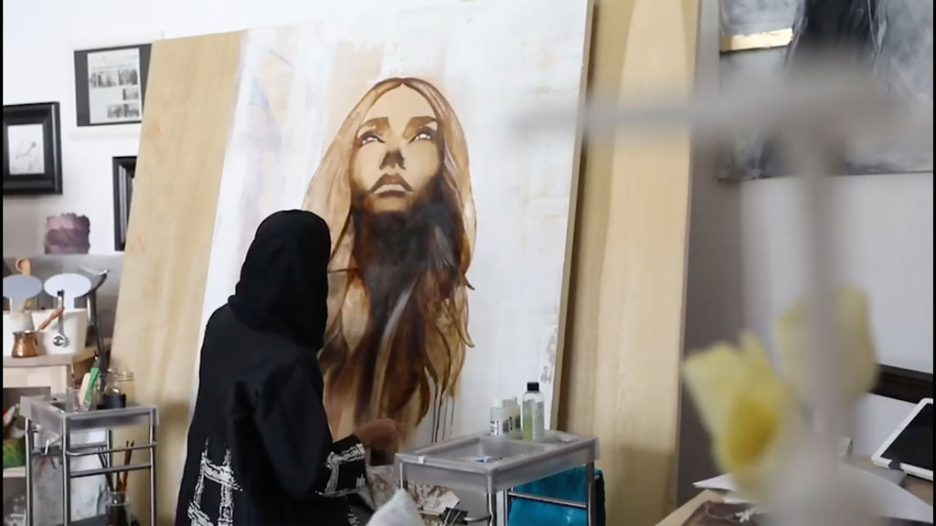 وحول الوقت الذي تمضيه الفنانة داخل هذا المرسم، تقول: “لا أستطيع تحديد ساعات معيَّنة. فقد أقضي أحياناً معظم يومي داخل المرسم. ولكن قد يتراوح هذا الوقت ما بين خمس وثماني ساعات يومياً”.