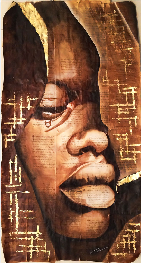 “في دواخلنا عوالم خفية لم نكتشفها، وزحام من المشاعر التي نحاربها، وقصص وخيالات لم نعشها فنهرب منها إليها، ونبقى نحمل تلك المشاعر معنا. فالسكوت قد لا يعني الألم أو أن بداخلنا صراعات، ولكنه يأخذنا جوالات تزرع في قلوبنا الأمل بكل ما هو قادم. وليس الكلام سوى وسيلة نلجأ إليها للتعبير لا التغيير. فكلما علت الأصوات تاهت النظرات، عرفت حينها أنني قادرة على قراءة العيون، والشعور بكل ما هو مدفون داخل النفس. فأنا أدقِّق في الأشياء، وأركِّز على التفاصيل التي قد لا تلفت انتباه أحد. ولهذا تجذبني النظرات أكثر من الكلمات. وأعتقد أن هذا ما جعلني أركِّز بشكل كبير على العيون في لوحاتي. فالعين بالنسبة لي هي مركز أو أساس مشاعر الإنسان. فمهما أخفى الشخص كلماته أو مكنونات نفسه، يستحيل على نظراته أن تخفيها عمن يجيد قراءتها وفهمها”.