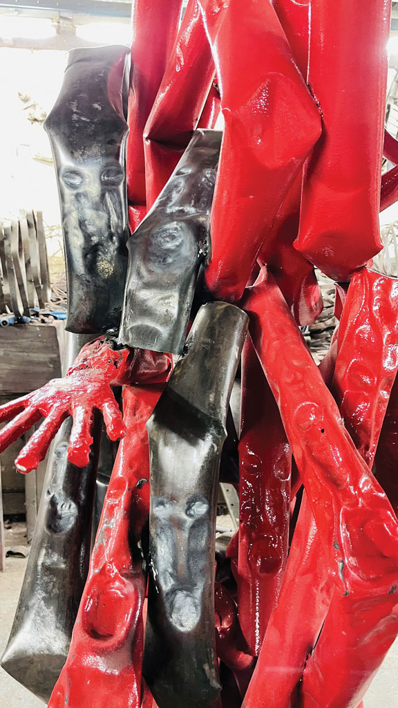 استخدم الخامات الصلبة لبناء اللوحة البارليافية النافرة والمنحوتة التجريدية.. وجعل الحديد أكثر ليونة ومرونة ومشحوناً بالموضوعات الإنسانية والعاطفية.