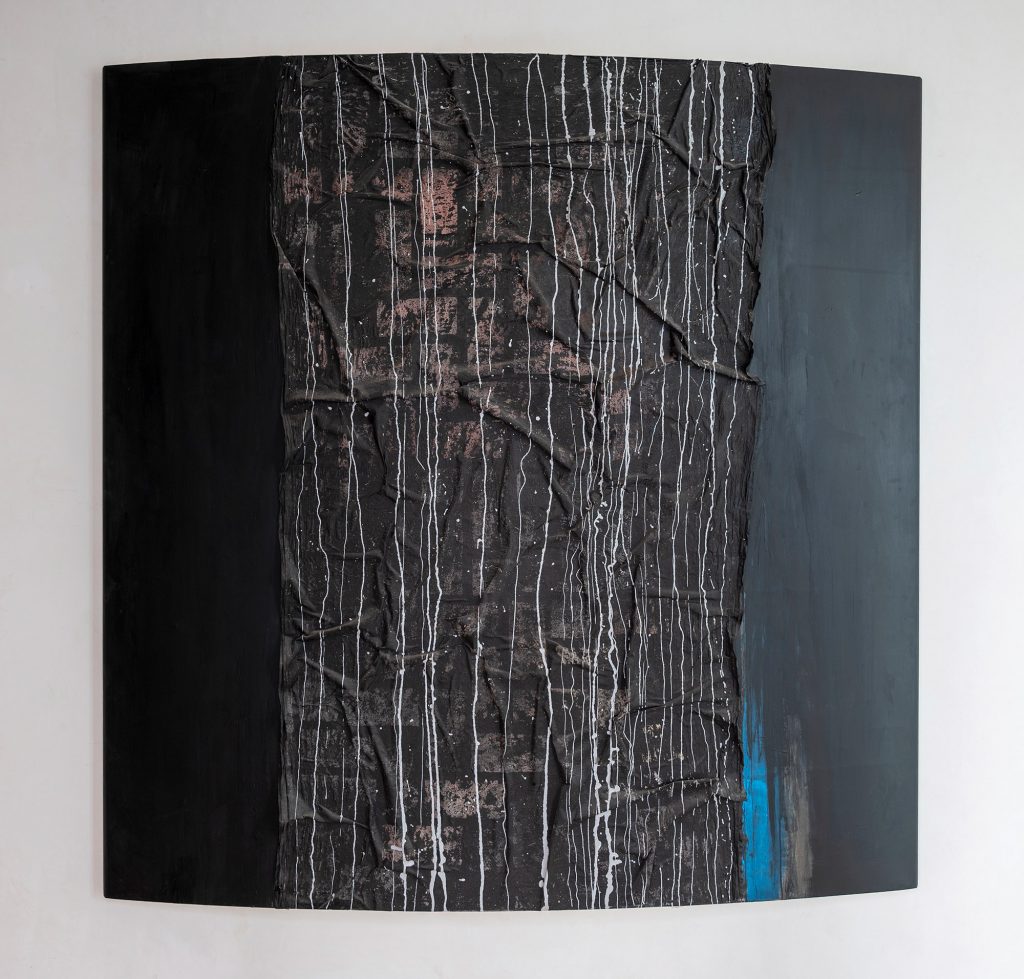 في ديسمبر ، من عام 1990م، وأثناء اجتياح دولة الكويت، كثيراً ما كنت أذهب إلى مرسمي الخاص في جمعية البحرين للفنون التشكيلية، في حدود التاسعة مساءً، فأجلس وحيداً وأرسم إلى وقت متأخر، وكنت أثناء ذهابي إلى المرسم وخلال عودتي متأخراً إلى منزلي بالرفاع، أجد الشوارع خالية من البشر.. كان هدوءاً موحشاً وغريباً، فاستلهمت من ذلك المشهد لوحتي هذه التي سمّيتها “هدوء ما قبل العاصفة”، حيث نرى أشخاصاً يرقصون في اللوحة وبينهم نوع من التشابك، وكأنهم ينتظرون لحظة هجوم بعضهم على بعض.