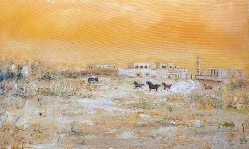 هي لوحة رسمتها عام 1966م، وكان عمري حينها 15 عاماً، وقد عبّرت والدتي – رحمها الله – عن إعجابها وفرحتها الكبيرة بها، وكنت قد رسمتها على الجدار بجوار غرفة نومي مع شقيقي، وقد تأثّرتْ بسبب عوامل الزمن لكني حافظت عليها في موقعها داخل هذا البيت، وكنت حريصاً على بقائها ضمن مجموعاتي الفنية، كما أحرص دائماً على اقتناء أعمال فنية من الروَّاد والشباب في البحرين وكذلك الفنانين العرب.