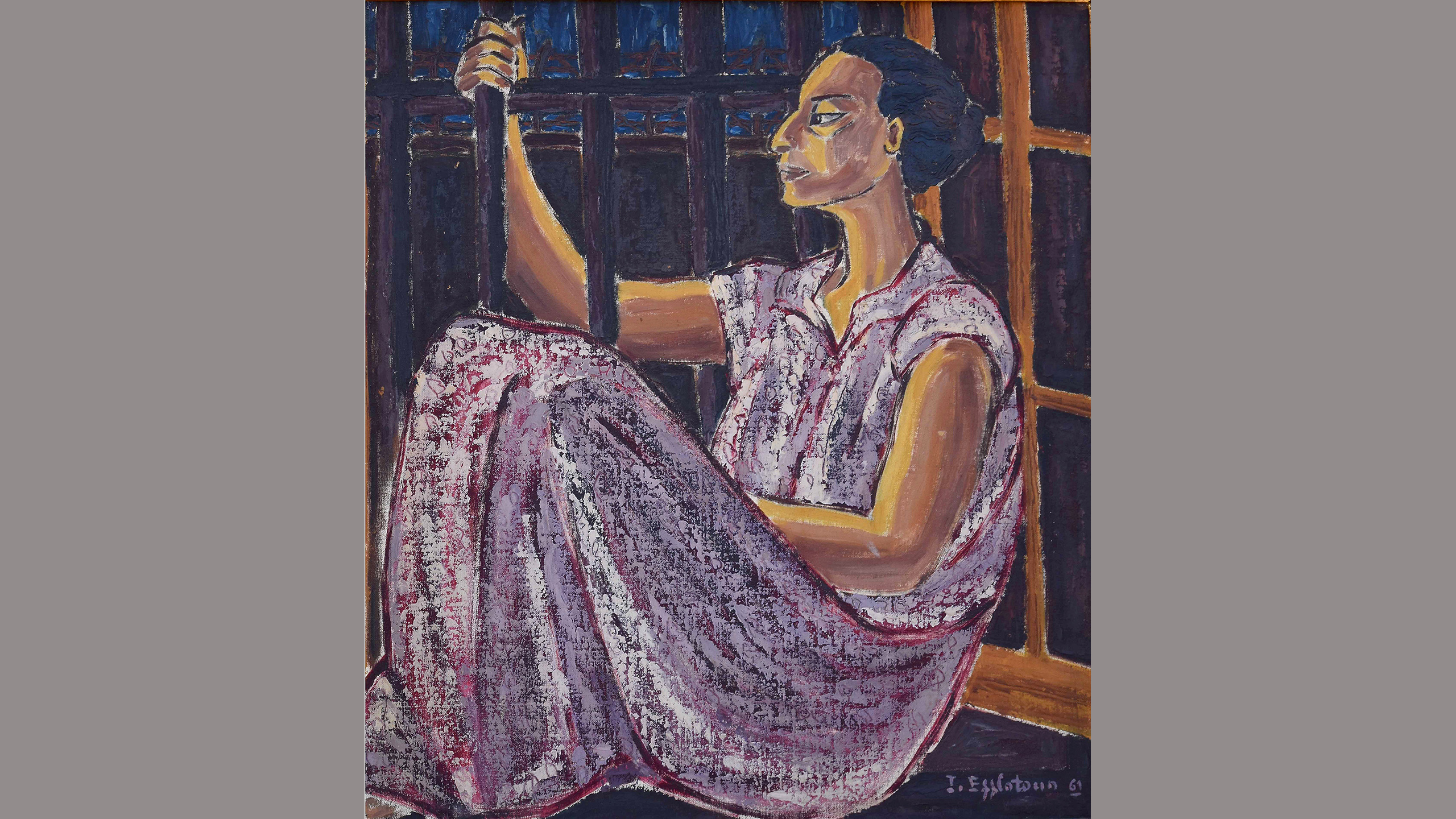 إنجي أفلاطون، أحلام المعتقلة، ١٩٦١. ألوان زيتية على قماش، ٥٠ × ٤٠ سم. بإذن من مؤسسة بارجيل للفنون، الشارقة.