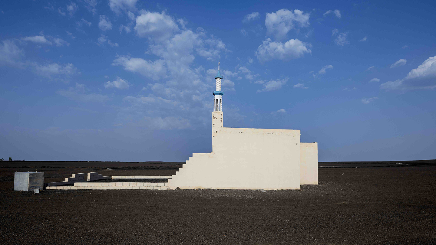 فعلى سبيل المثال، تصوِّر أعمال العوفي استخدامات الإنسان في المناطق القصيّة لمواد مختلفة مستفيدًا مما يتوفّر حوله؛ لإنشاء المساجد في العراء، وبناء جدرانها وأبوابها ومآذنها المصنوعة في كثير من الأحيان من الخردة والمواد المهملة. إضافةً إلى القيمة الجمالية لتلك الأبنية المُرتجَلة، تعضدها القيمة الروحانية لمفهوم المسجد نفسه بوصفه مكانًا للعبادة. وتظهر المفارقة حين تُوضع المواد المتواضعة المتقشِّفة المُستخدمة في التكوينات المختلفة للمآذن والمنارات، في موضع جديد غير مألوف يُشير إلى قدرة الإنسان العملية على تسخير إمكانات المادة. وحينما تُوضع هذه القدرة العملية في هذا الموضع، يُلقى عليها ضوء جديد، يجعل منها ممارسة فنية ويعرّضها للأسئلة التي تنشأ من هذه التجربة.