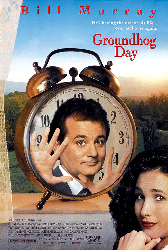 في فِلْم “يوم الجرذ” (Groundhog Day)، نجد كونورز الذي لديه قدر كبير من الغرور والأنانية، يعيش تجربة اليوم نفسه مراراً وتكراراً بنفس تفاصيله؛ كل يوم هو تكرار لأحداث يوم واحد. ويتجاوب كونورز مع هذه الحال من خلال محاولة إضفاء بعض المرح على يومه المتكرر؛ يسرق ويشرب الخمر بكثافة، ويقود سيارته بتهور، ويغوي نساء بلدته، ويحاول التلاعب بزميلته في العمل. يدرك كونورز في النهاية أنه لا يستطيع الاستمرار بهذه الطريقة، ويحاول الانتحار عدَّة مرات. أخيراً، وكحل لهذه المعضلة الأخلاقية التي يعاني منها، يقرر في نهاية المطاف جعل حياة سكان البلدة أفضل من خلال أفعاله. تعكس تصرفاته الجديدة فكرة الضمير الداخلي بقوة، حيث يتصرف من دون مصلحة شخصية تعود عليه، بل لجعل حياة من حوله أفضل. ومن خلال هذا الوجه الجديد له، يفلت من دورة اليوم الواحد المتكررة.