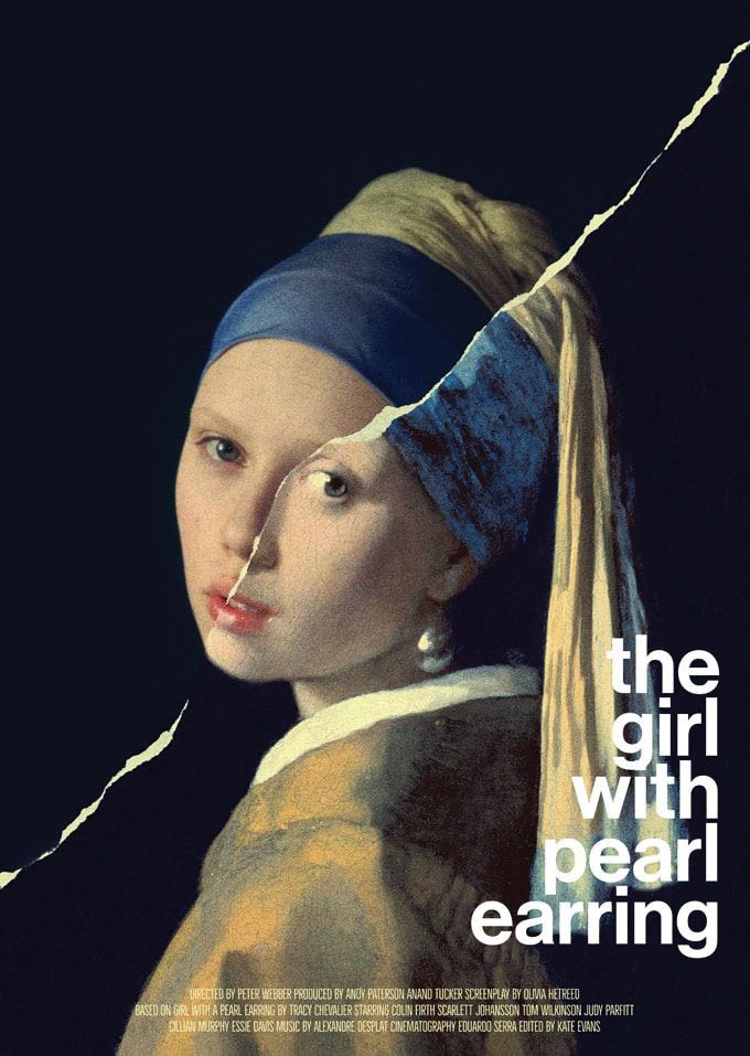 هذا الفلم الذي أخرجه بيتر فيبير وقامت ببطولته الممثلة سكرليت جوهانسون عام 2003م، يتخيل الظروف التي أحاطت برسم هذه اللوحة على يد فيرمير، اقتباساً عن الكتاب الذي ألفته ترايسي شوفاليه ونشرته عام 1999م بالعنوان نفسه. ورغم حضور الدراما العاطفية، تبقى عملية رسم البورتريه محور القصة كلها، حتى إن واحداً من أقوى المشاهد فيه هو عندما يثقب الرسام أذن الفتاة ليعلق فيها القرط. الأمانة للحقائق التاريخية في هذا الفلم غير مؤكدة بتاتاً، لأن مؤلفة الكتاب، ومن بعدها المخرج، أطلقا العنان للخيال في سد الثغرات الكثيرة في تاريخ هذه اللوحة.