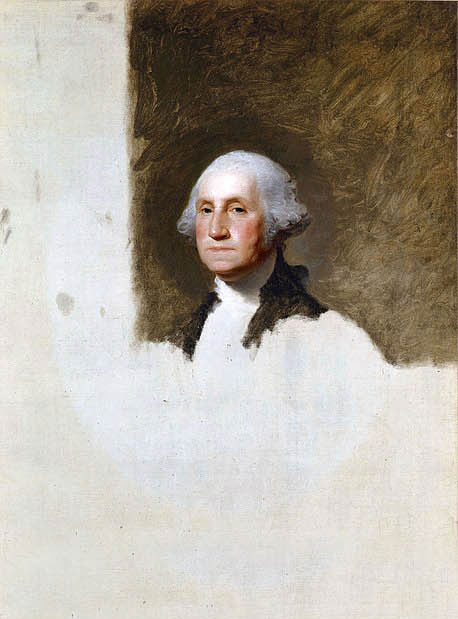 في أواخر القرن الثامن عشر، رسم الفنان الأمريكي غلبرت ستيوارت عدة بورتريهات للرئيس جورج واشنطن، كان أفضلها واحد لم يكتمل العمل عليه، لأنه كان من الجودة أن راح الفنان يتلقى طلبات لشراء نسخ عنها. فانصرف عن إكمال اللوحة إلى نسخها، وأنجز بالفعل ثلاثمئة نسخة (كان يبيع الواحدة منها بمئة دولار). وبعد وفاته، انتقلت اللوحة غير المكتملة إلى “أثينايوم بوسطن، حيث تقرر لاحقاً صناعة لوحة حفرية منها لطباعتها على ورقة الدولار الواحد. ومنذ عام 1869م وحتى اليوم، يُطبع هذا البورتريه ملايين ومليارات المرات سنوياً على الدولار الأمريكي.