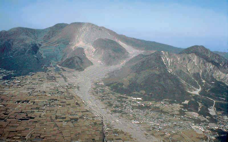 جبل أونزن، اليابان، 1792م، دفن مدينة شيمابارا بأكملها، وقضى على 15 ألف نسمة، وتسبَّب بموجة تسونامي