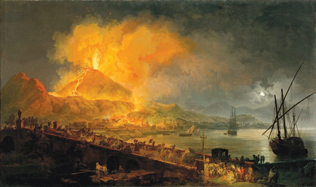 حتى نهاية القرن السابع عشر في أوروبا، كان رسم الطبيعة كغاية بحد ذاتها يقتصر على المدرسة الهولندية، حيث لا براكين. أما في فنون جنوب القارة، فقد كانت الطبيعة مجرد خلفية لموضوع أدبي أو أسطوري. ولكن ما إن تغيرت هذه النظرة إلى الطبيعة، حتى اتسعت محترفات الفنانين لمشاهد البراكين، وكان في طليعتها بركان فيزفيو القريب من مدينة نابولي التي تأوي أو تستقبل عدداً ملحوظاً من الفنانين.