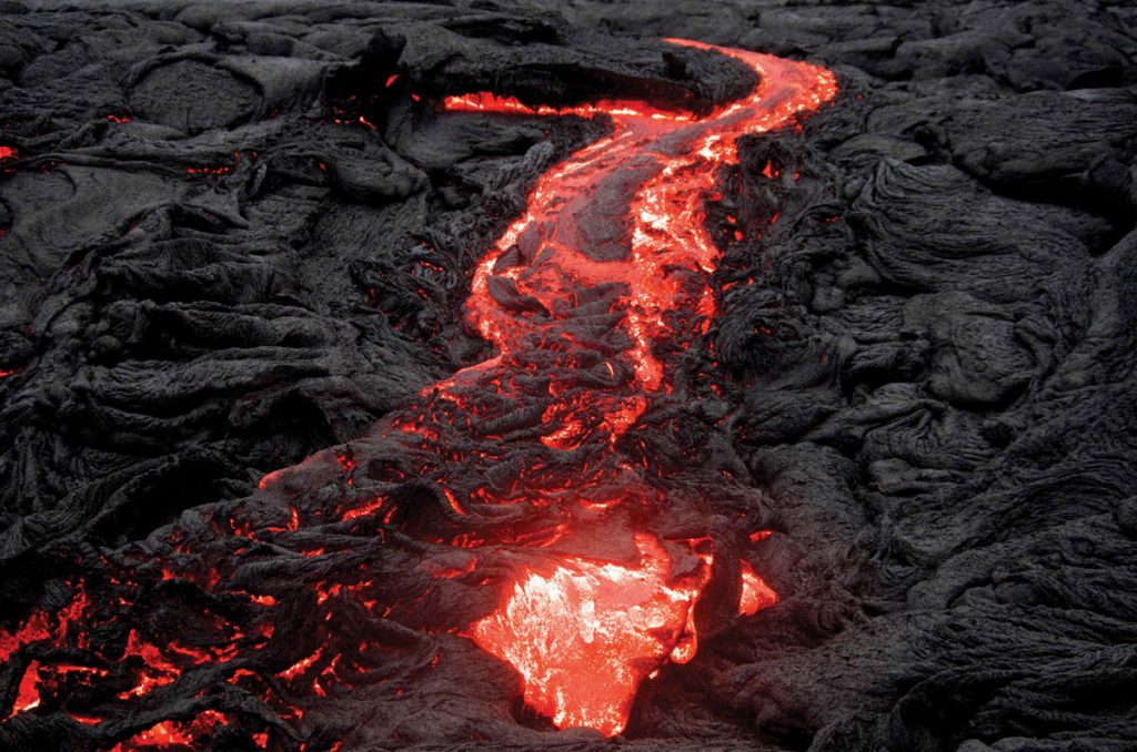 تنساب الحمم الذائبة ببطء من براكين أخرى، في ما يشبه الأنهار الحارقة لكل ما يعترض سبيلها، مثل بركان كيلاوِيا في هاواي، ونشاطه عام 2018م