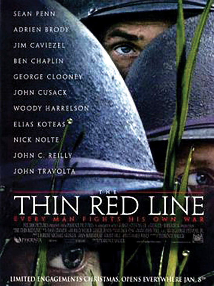 في المقابل، نجد المخرج الأمريكي بريان دي بالما، يطلق على أحد أفلامه الأكثر احتجاجاً ضدّ الحروب عنوان “الخطّ الأحمر الرفيع” (1998م)، ويعني به خيط الدم الناتج عن مقتله في معركةٍ حربية. ويذكّرنا هذا العنوان بواحدٍ من أقوى مشاهد رواية “مائة عام من العزلة” للروائي غابريال غارسيا ماركيز، حيث يعطي لخيط الدمّ في مشهد قتلٍ داخل بيت “آل بونديا” ذكاءً خارقاً، فيصف الخيط الذي يسيل من القتيل في خطٍّ مستقيمٍ حتى يصل إلى بساطٍ عزيزٍ على أهل البيت، فينحرف عن مساره من تلقائه، متجنّباً تلويث البساط، مواصلاً سيره بكلّ أناقةٍ واحترام.