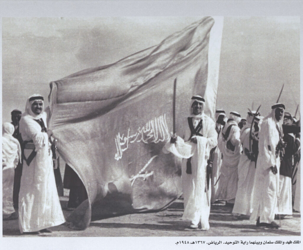 اجتمع السعوديون كما اجتمع آباؤهم من قبلهم مبايعين أئمتهم تحت الراية نفسها، الراية المصنوعة من الإبريسم الأخضر المنسوج عليها عبارة التوحيد، فكان أن قامت الدولة مرة أخرى، ورفرفت رايتها خفّاقة.