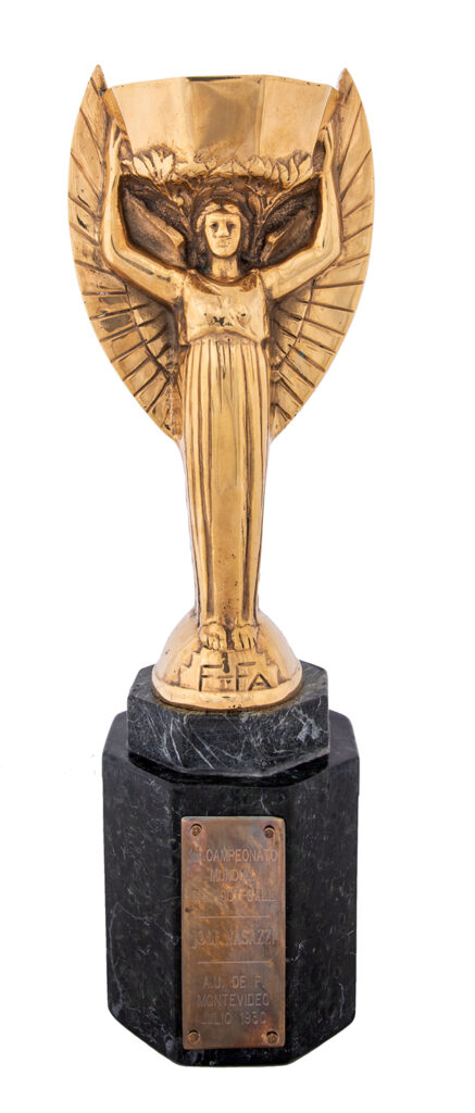 لكن ما هي قصة هذه الكأس التي يصبو إليها العالم كله وتتعلق بها أبصار أمهر اللاعبين؟ هل هناك نسخة واحدة منها أم أكثر؟ ما هي حكايتها بالضبط؟ ثمة كأس استُخدمت منذ 1930م حتى 1970م وسُميت في الأصل “فيكتوريا”، لكن اسمها تغير في 1946م ليصبح “كأس جول ريميه”، تكريمًا لأول رئيس لفيفا، وصاحب الفضل الأكبر في تنظيم أول مونديال. صمم هذه الكأس الأولى النحات الفرنسي أبيل لافلور وظهرت فيها إلهة النصر الإغريقية وهي تمسك بوعاء بين يديها، وكانت مصنوعة من الفضة الخالصة المكسوة بالذهب، وقاعدة من أحجار اللازورد.