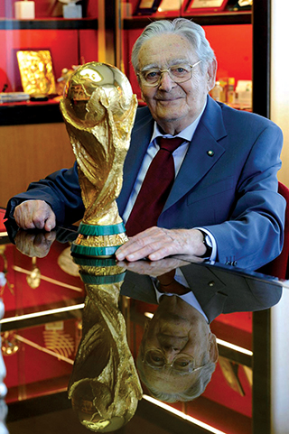 المهم أن فيفا بعد نسخة 1970م صار في حاجة إلى كأس جديدة بعد أن تقرر احتفاظ البرازيل بكأس جول ريميه إلى الأبد. فتح الاتحاد الدولي الباب لتلقي المقترحات، فحصل على طلبات من 53 نحاتًا من سبع دول. استقر فيفا في النهاية على سيلفيو جاتسانيجا لتصميم الكأس الجديدة، وكلف بيرتوني ميلانو، وهو مُصنع جوائز وميداليات من مدينة ميلانو الإيطالية، بهذه المهمة. يعرف الكل بالطبع شكل التصميم: شخصان يُمسكان الكرة الأرضية فوق رأسيهما. يبلغ طول هذه الكأس 36.8 سنتيمتر ووزنها 6 كيلوغرامات و175 غرامًا، وهي مصنوعة من 18 قيراطًا من الذهب.