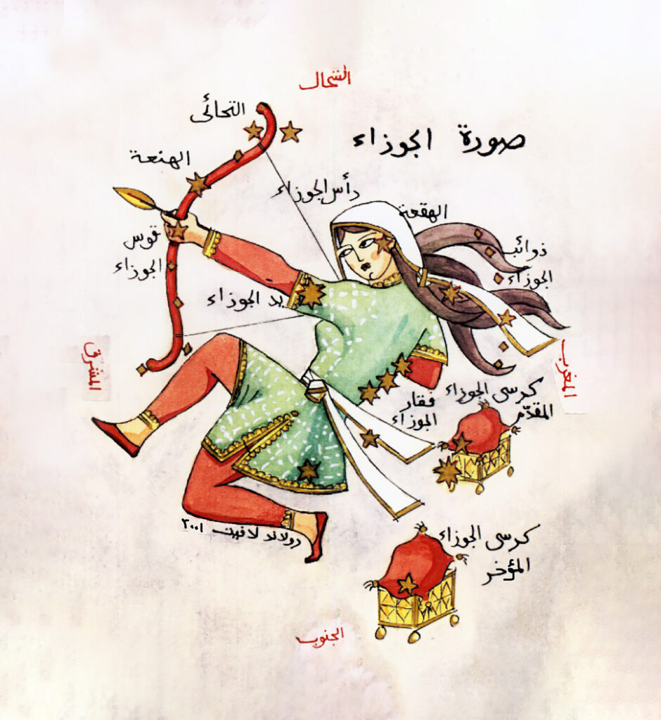 وأيضًا كتاب “صور الكواكب الثمانية والأربعين” لمؤلفه عبدالرحمن بن عمر الصوفي، الذي عكف على كتابته في القرن الرابع الهجري، وأكملت مسيرته بعده ابنته أرجوزة بنت الصوفي. ويضم هذا الكتاب تصنيفًا للكواكب والنجوم التي يستخدمها البحّارة في أسفارهم، ويتحدث عن تصور العرب قديمًا للكواكب وعددها الذي بلغ عندهم 48. كما يضم رسومات للكواكب والنجوم بشكلين مختلفين لزيادة الشرح والتفصيل.