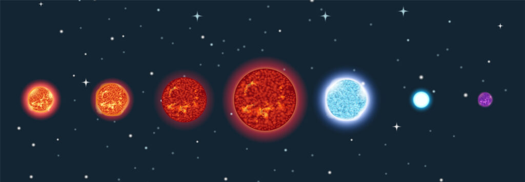تتفاوت أحجام النجوم ما بين حجم مدينة وما يكفي لأن يبتلع مجموعتنا الشمسية بأسرها. وقد صنّفها علماء الفلك في خمس فئات أساسية قياسًا على شمسنا، هي: