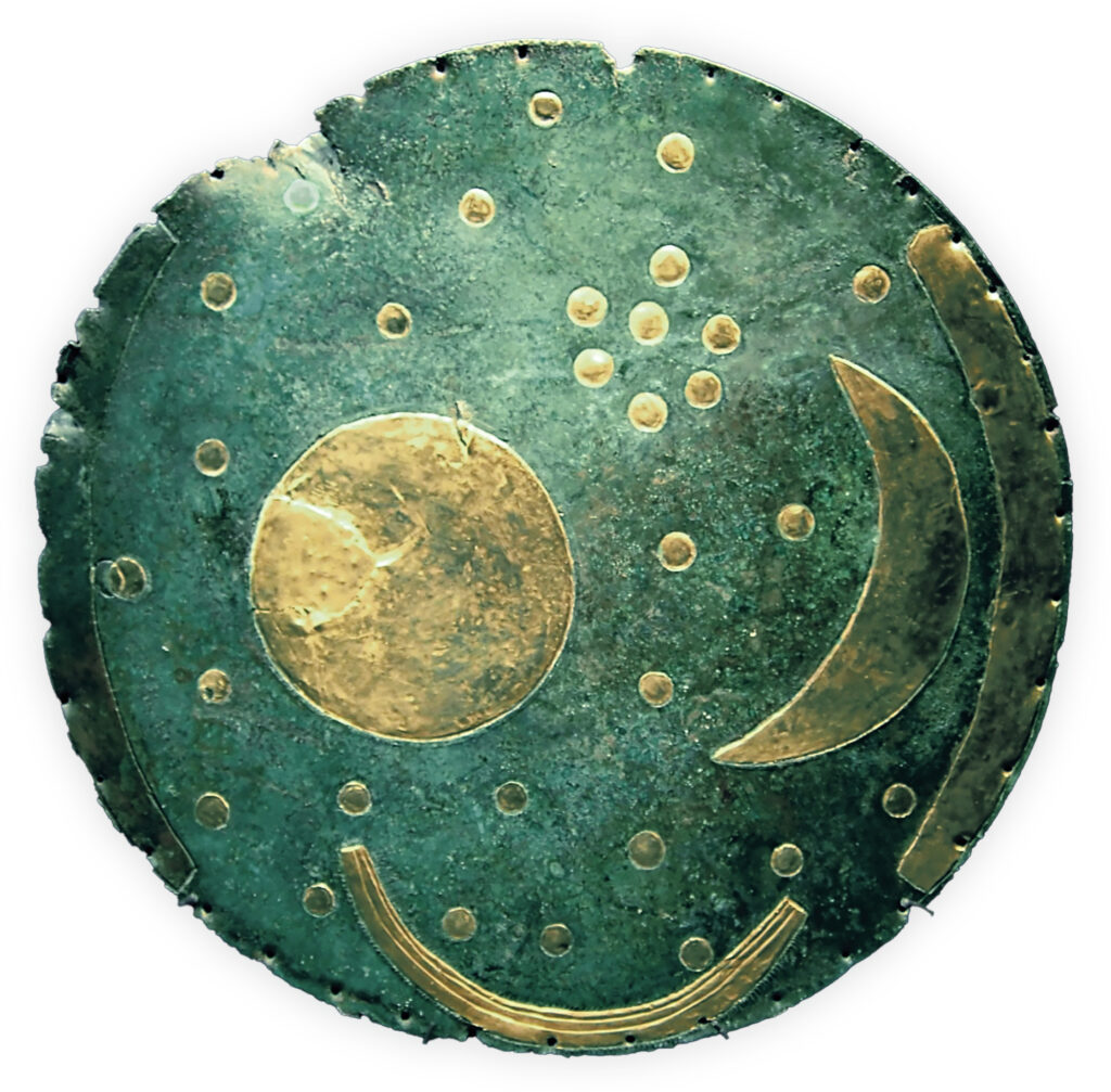 وفي اليونان القديمة أيضًا، هناك وجود للهلال والنجمة، فكان الهلال يمثل آلهة القمر الوثنية “لونا”، وكان النجم يوضع فوق الهلال ليرمز إلى نقاء الأنثى وعذريتها. أما قرص “نيبرا السماوي”، وهي القطعة الأثرية المصنوعة من البرونز المطعم بالذهب ويعود تاريخها إلى عام 1600 قبل الميلاد، فهي أحد أقدم تمثيلات الهلال والنجوم في الفن الغربي. وقد عُثر على هذا القرص في ألمانيا عام 1999م، ولكن الغرض منه غير مؤكد.