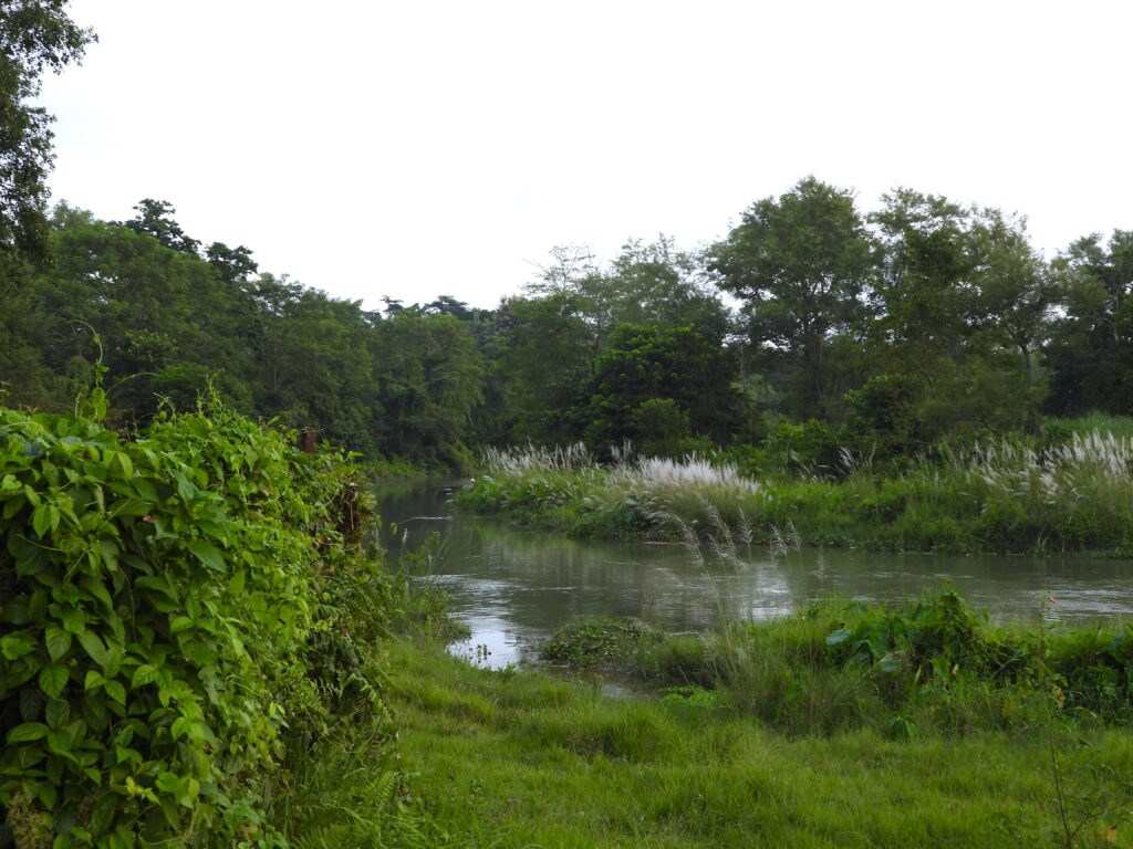 فاخضوضرت بغنائه الأعشابُ”